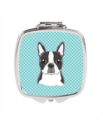 Carolines Treasures BB1141SCM Checkerboard Blue Boston Terrier Compact Mirror, 2.75 x 3 x .3 In.
