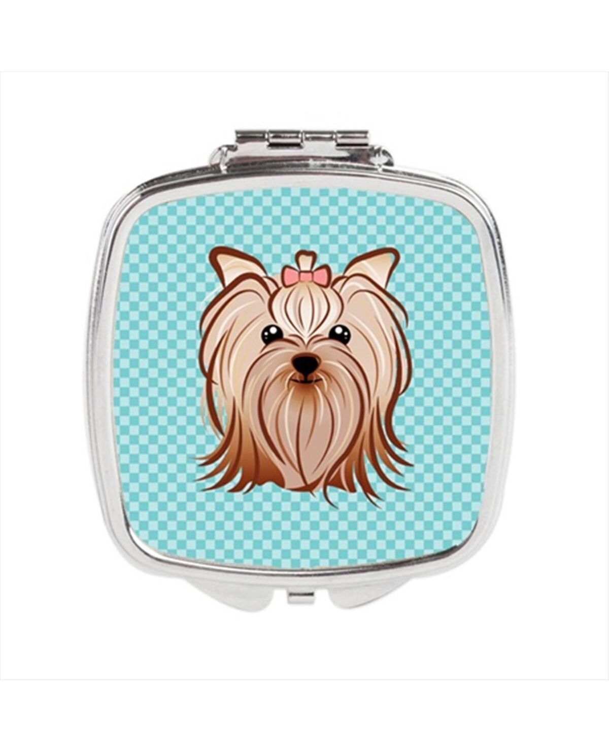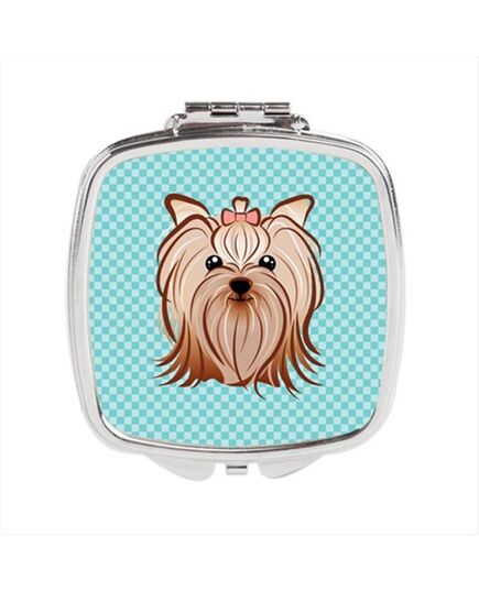 Carolines Treasures BB1142SCM Checkerboard Blue Yorkie Yorkishire Terrier Compact Mirror, 2.75 x 3 x .3 In.