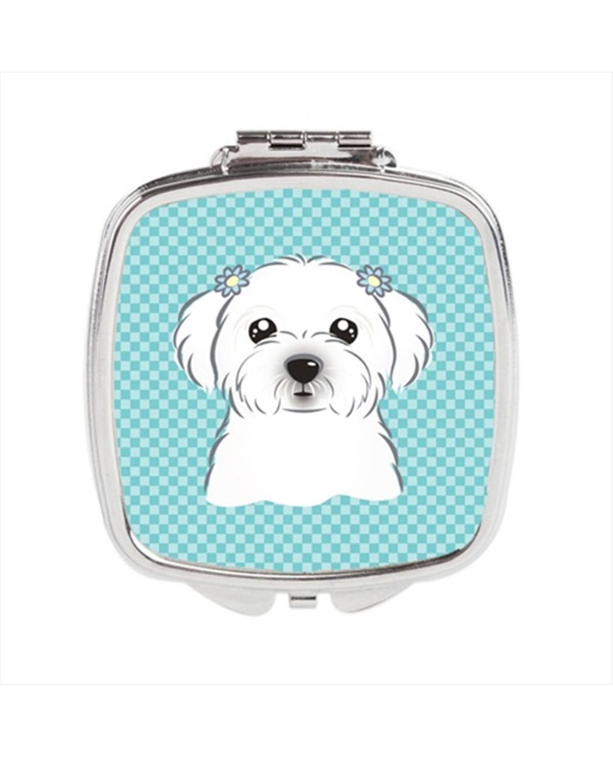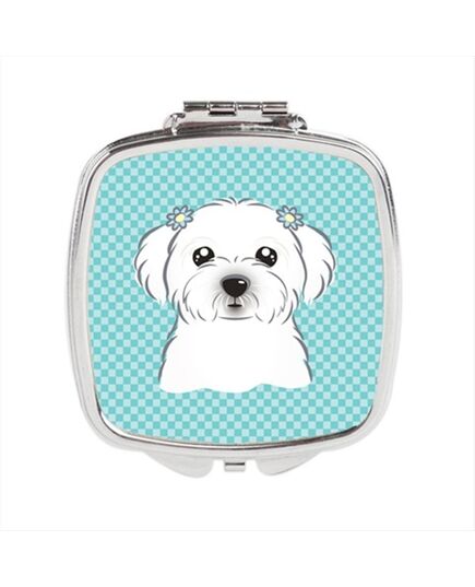 Carolines Treasures BB1146SCM Checkerboard Blue Maltese Compact Mirror, 2.75 x 3 x .3 In.
