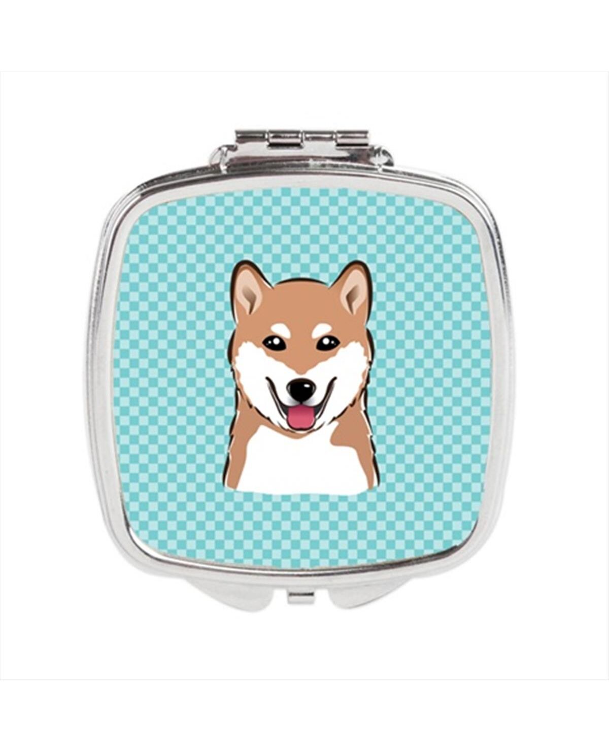 Carolines Treasures BB1163SCM Checkerboard Blue Shiba Inu Compact Mirror, 2.75 x 3 x .3 In.