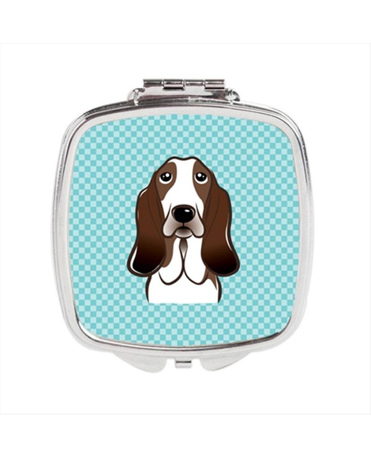 Carolines Treasures BB1181SCM Checkerboard Blue Basset Hound Compact Mirror, 2.75 x 3 x .3 In.