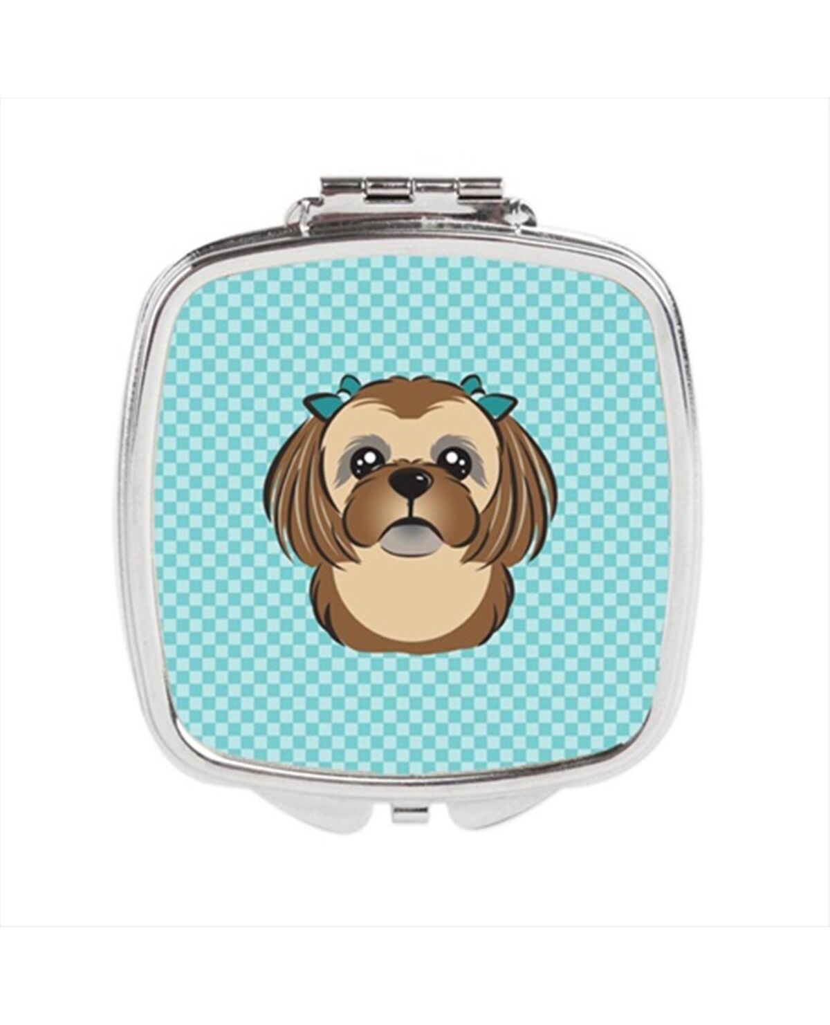 Carolines Treasures BB1187SCM Checkerboard Blue Chocolate Brown Shih Tzu Compact Mirror, 2.75 x 3 x .3 In.