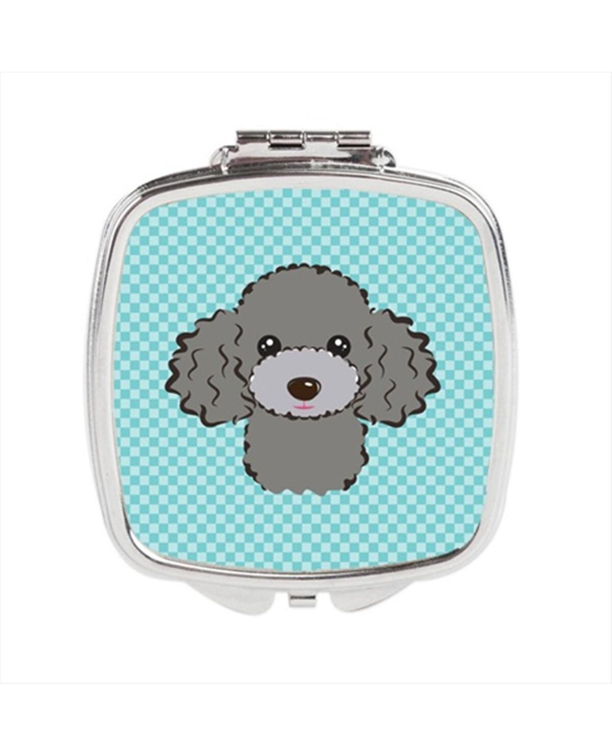 Carolines Treasures BB1197SCM Checkerboard Blue Silver Gray Poodle Compact Mirror, 2.75 x 3 x .3 In.