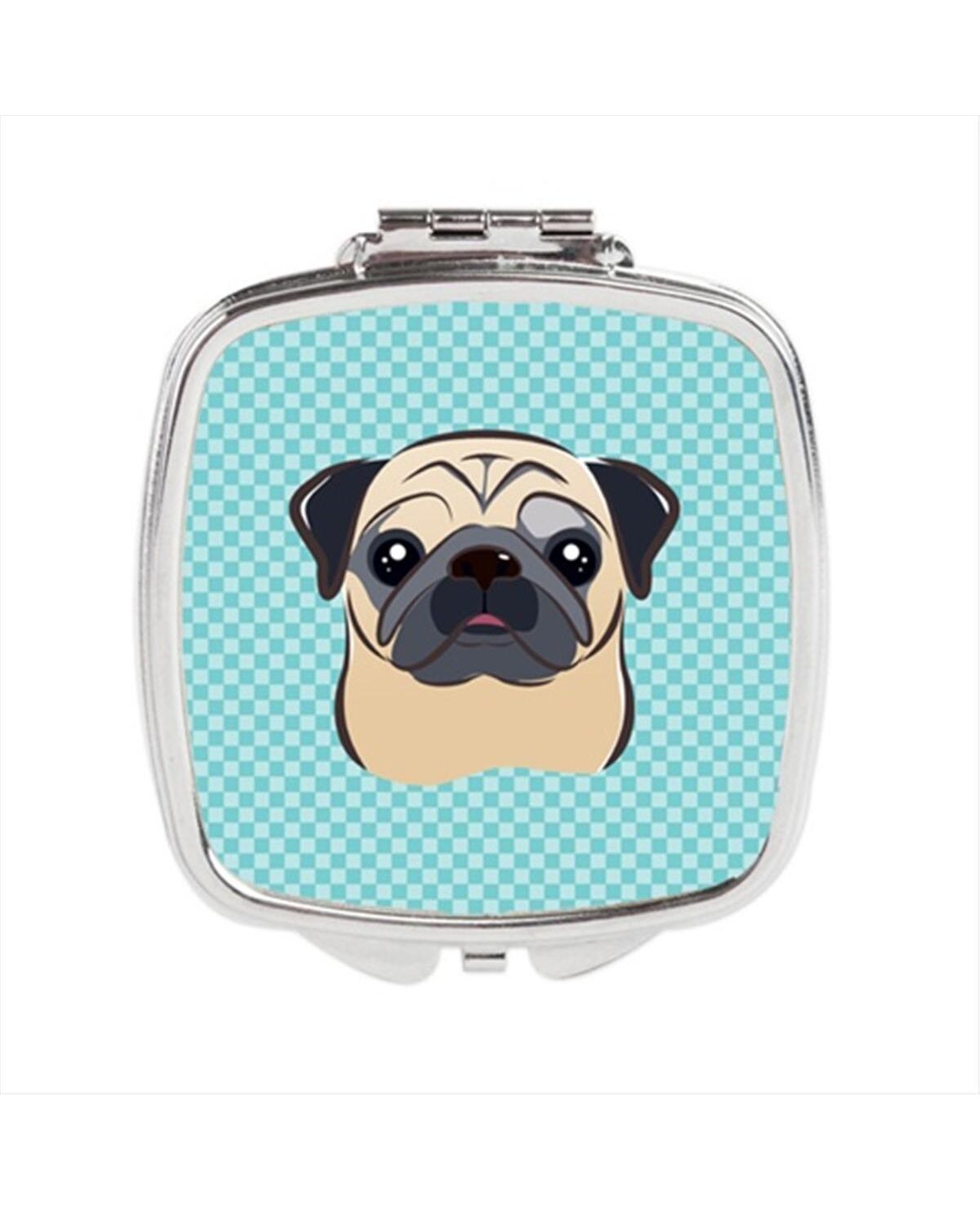Carolines Treasures BB1200SCM Checkerboard Blue Fawn Pug Compact Mirror, 2.75 x 3 x .3 In.