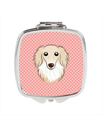 Carolines Treasures BB1212SCM Checkerboard Pink Longhair Creme Dachshund Compact Mirror, 2.75 x 3 x .3 In.