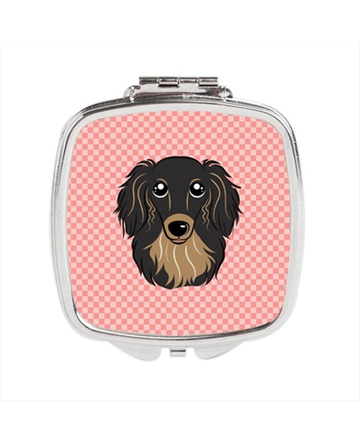 Carolines Treasures BB1213SCM Checkerboard Pink Longhair Black And Tan Dachshund Compact Mirror, 2.75 x 3 x .3 In.
