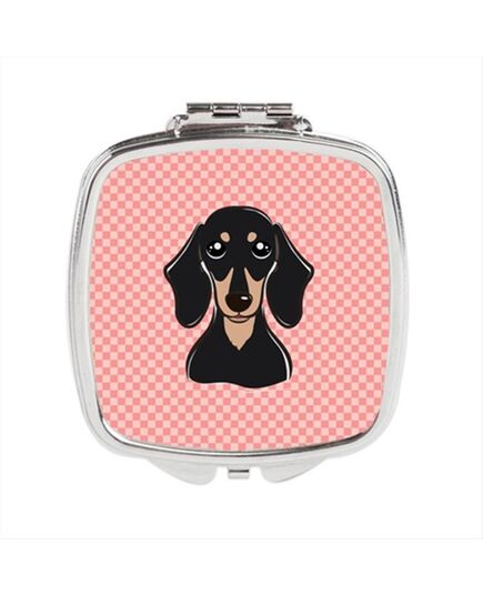 Carolines Treasures BB1215SCM Checkerboard Pink Smooth Black And Tan Dachshund Compact Mirror, 2.75 x 3 x .3 In.