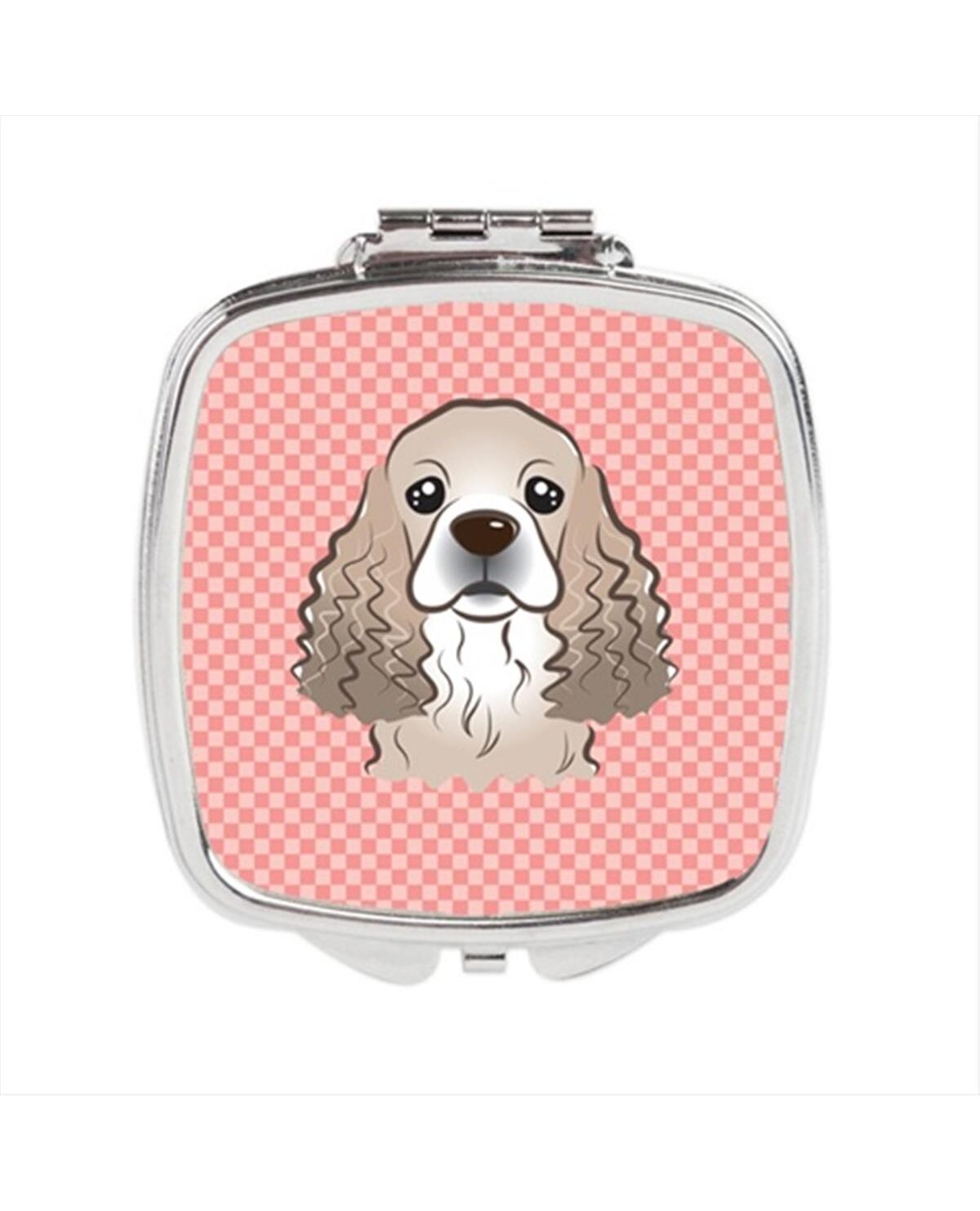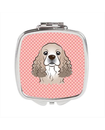 Carolines Treasures BB1216SCM Checkerboard Pink Cocker Spaniel Compact Mirror, 2.75 x 3 x .3 In.