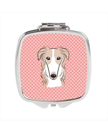 Carolines Treasures BB1228SCM Checkerboard Pink Borzoi Compact Mirror, 2.75 x 3 x .3 In.