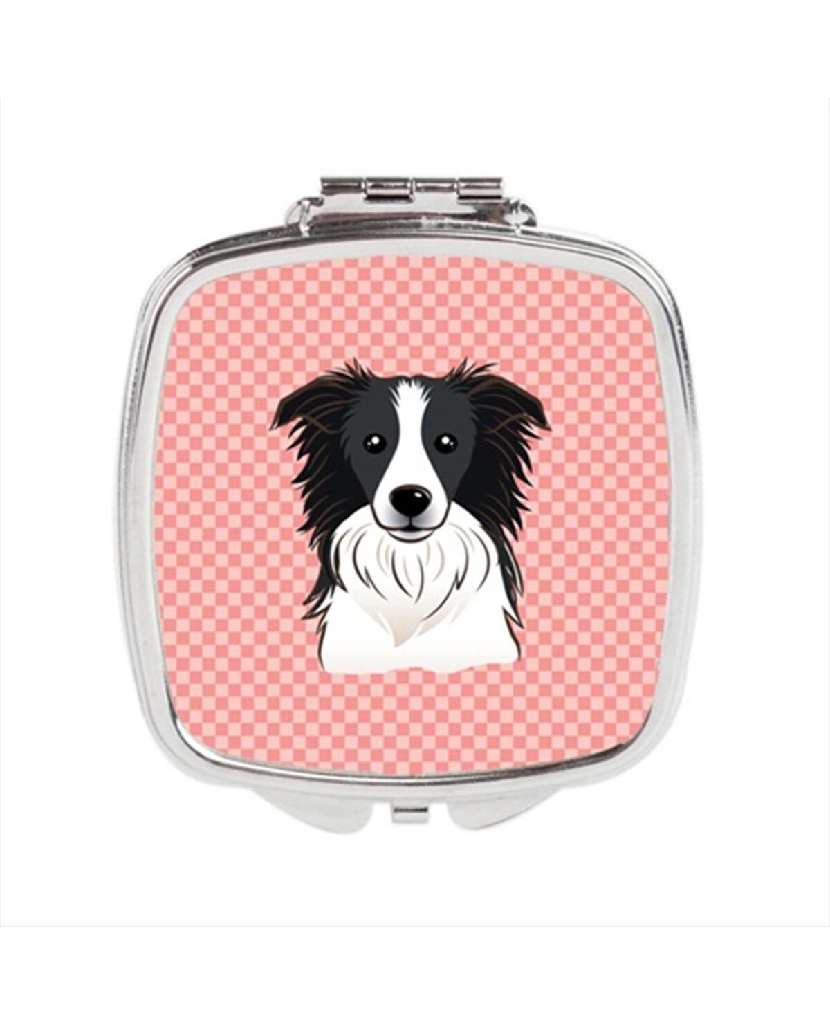 Carolines Treasures BB1241SCM Checkerboard Pink Border Collie Compact Mirror, 2.75 x 3 x .3 In.