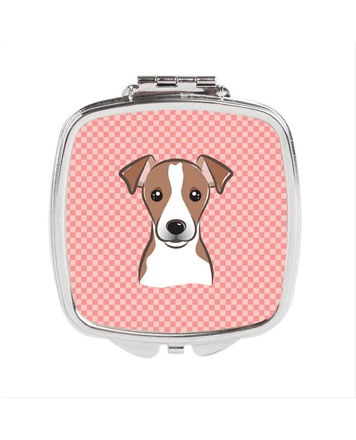 Carolines Treasures BB1260SCM Checkerboard Pink Jack Russell Terrier Compact Mirror, 2.75 x 3 x .3 In.