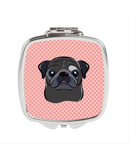 Carolines Treasures BB1263SCM Checkerboard Pink Black Pug Compact Mirror, 2.75 x 3 x .3 In.