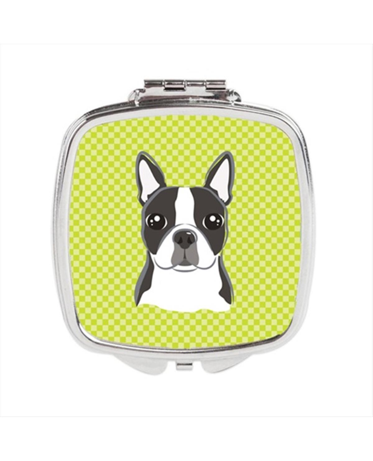 Carolines Treasures BB1265SCM Checkerboard Lime Green Boston Terrier Compact Mirror, 2.75 x 3 x .3 In.