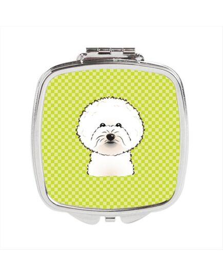 Carolines Treasures BB1279SCM Checkerboard Lime Green Bichon Frise Compact Mirror, 2.75 x 3 x .3 In.