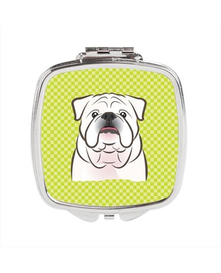Carolines Treasures BB1282SCM Checkerboard Lime Green White English Bulldog Compact Mirror, 2.75 x 3 x .3 In.