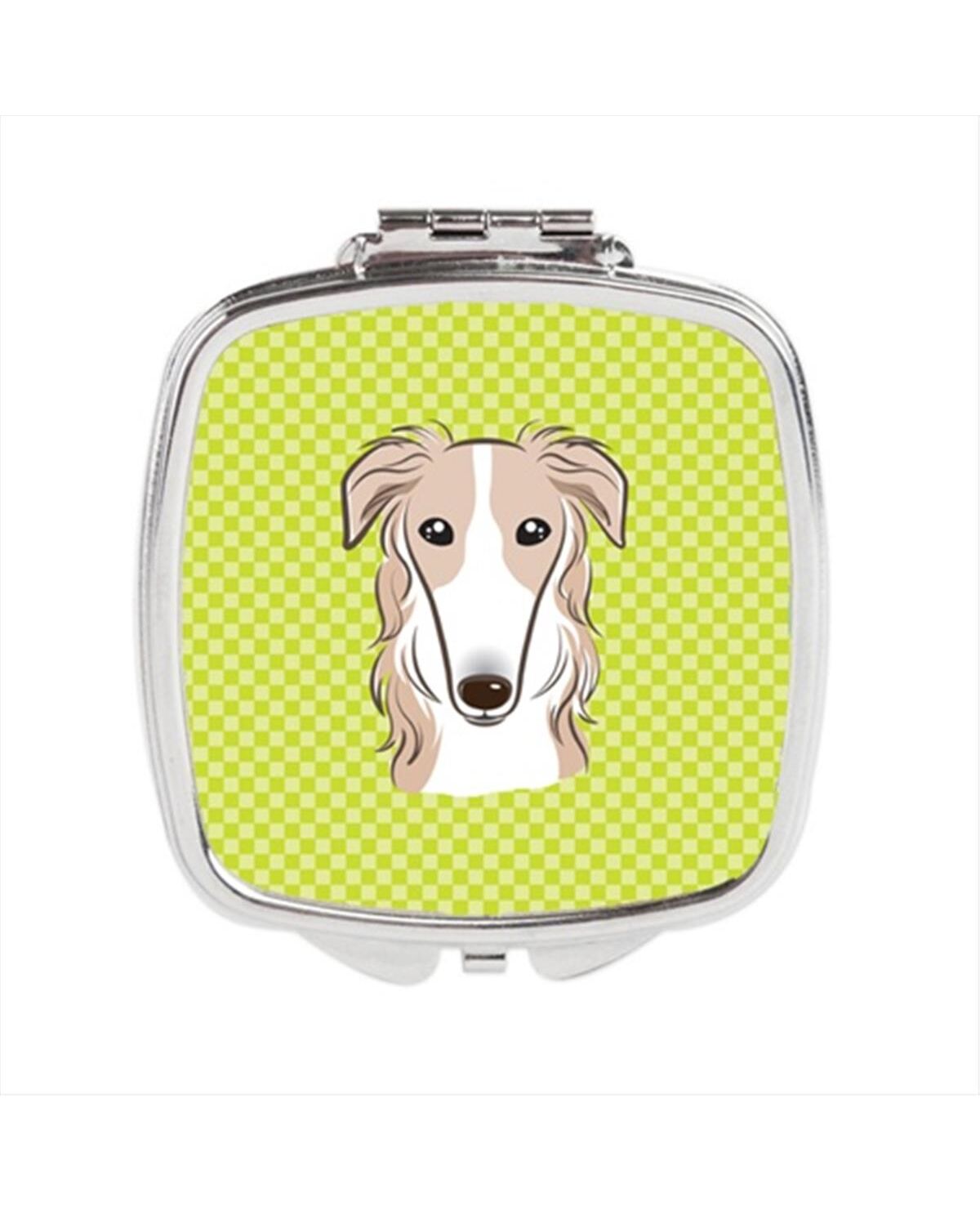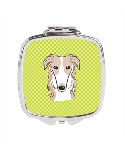 Carolines Treasures BB1290SCM Checkerboard Lime Green Borzoi Compact Mirror, 2.75 x 3 x .3 In.