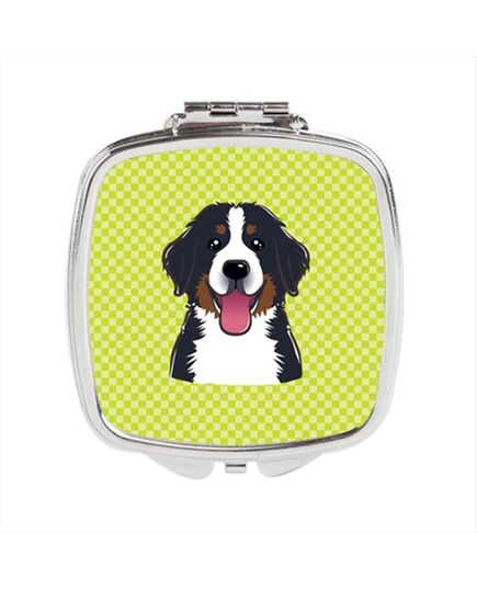 Carolines Treasures BB1299SCM Checkerboard Lime Green Bernese Mountain Dog Compact Mirror, 2.75 x 3 x .3 In.