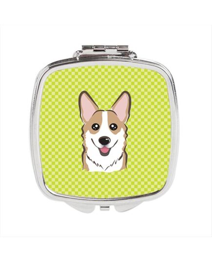 Carolines Treasures BB1315SCM Checkerboard Lime Green Corgi Compact Mirror, 2.75 x 3 x .3 In.