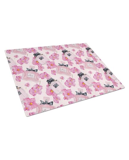 Carolines Treasures BB7510LCB Watercolor Pink Flowers & Perfume Glass Cutting Board, Large