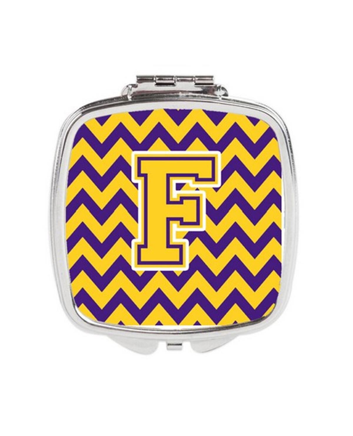 Carolines Treasures CJ1041-FSCM Letter F Chevron Purple & Gold Compact Mirror, 3 x 0.3 x 2.75 in.
