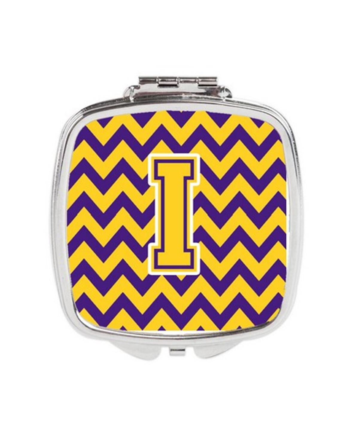 Carolines Treasures CJ1041-ISCM Letter I Chevron Purple & Gold Compact Mirror, 3 x 0.3 x 2.75 in.