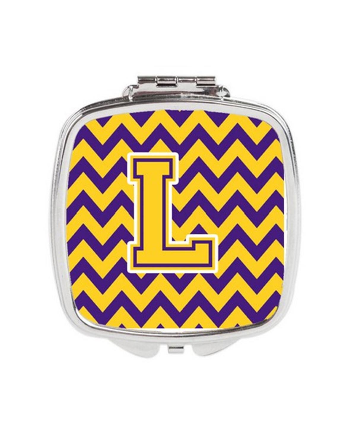 Carolines Treasures CJ1041-LSCM Letter L Chevron Purple & Gold Compact Mirror, 3 x 0.3 x 2.75 in.