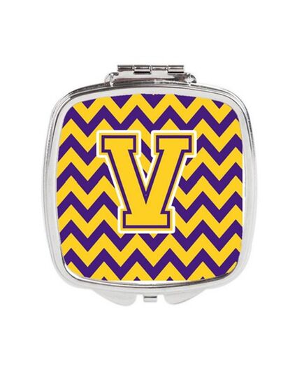 Carolines Treasures CJ1041-VSCM Letter V Chevron Purple & Gold Compact Mirror, 3 x 0.3 x 2.75 in.