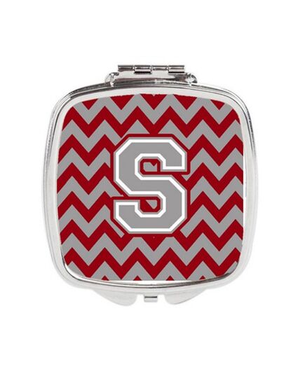 Carolines Treasures CJ1043-SSCM Letter S Chevron Crimson & Grey Compact Mirror