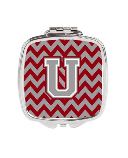 Carolines Treasures CJ1043-USCM Letter U Chevron Crimson & Grey Compact Mirror
