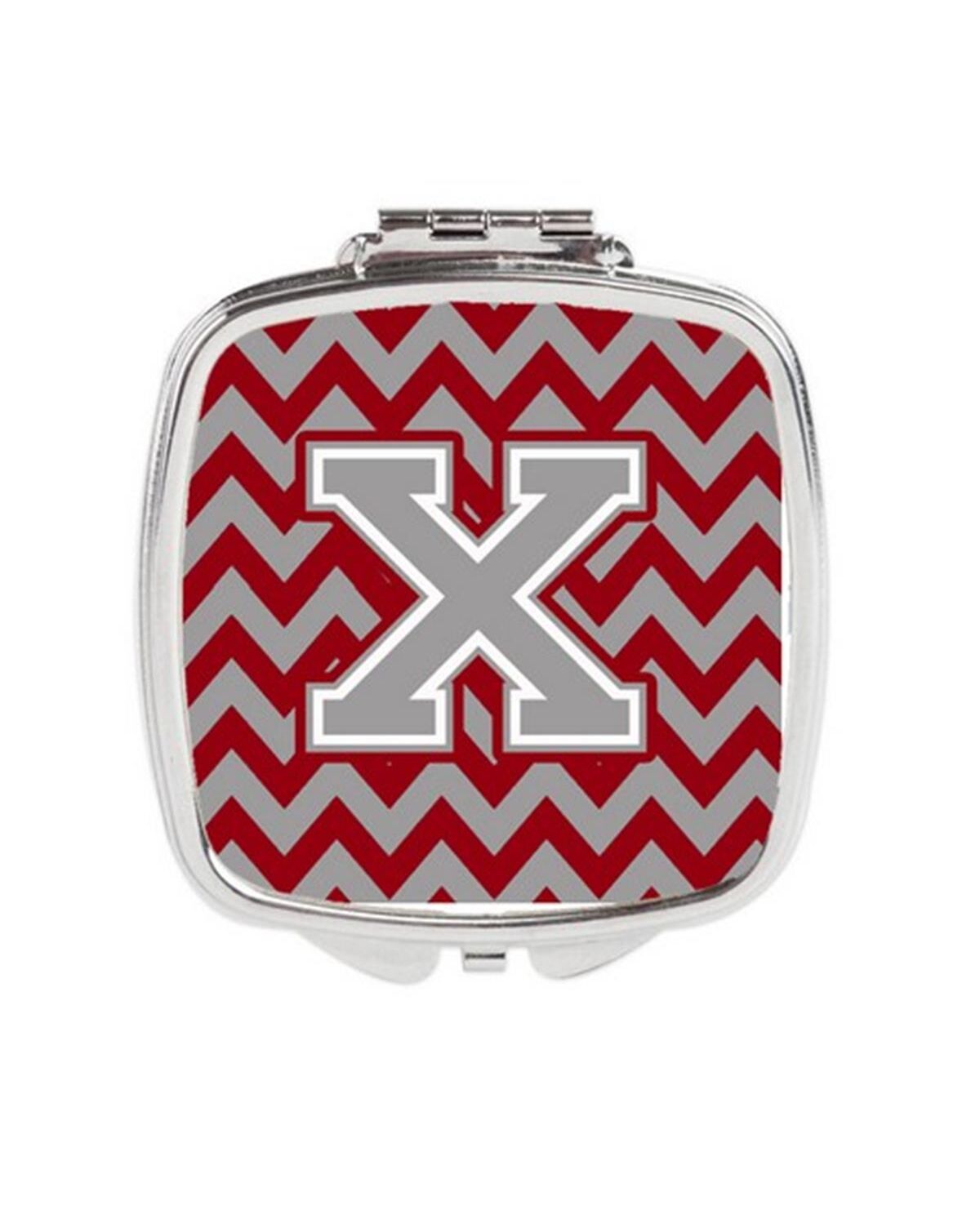 Carolines Treasures CJ1043-XSCM Letter X Chevron Crimson & Grey Compact Mirror