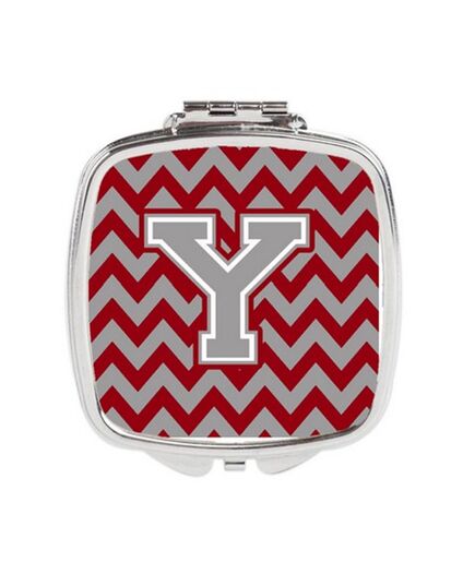 Carolines Treasures CJ1043-YSCM Letter Y Chevron Crimson & Grey Compact Mirror