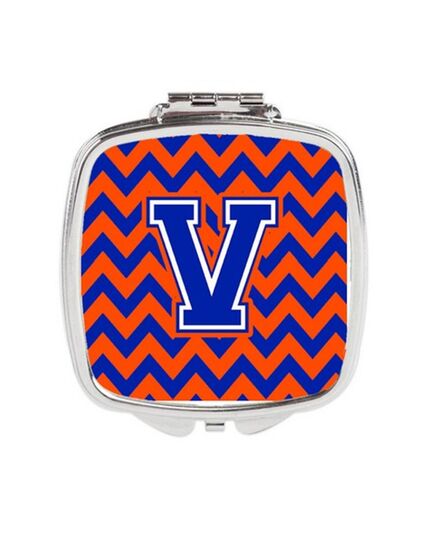 Carolines Treasures CJ1044-VSCM Letter V Chevron Orange & Blue Compact Mirror, 3 x 0.3 x 2.75 in.