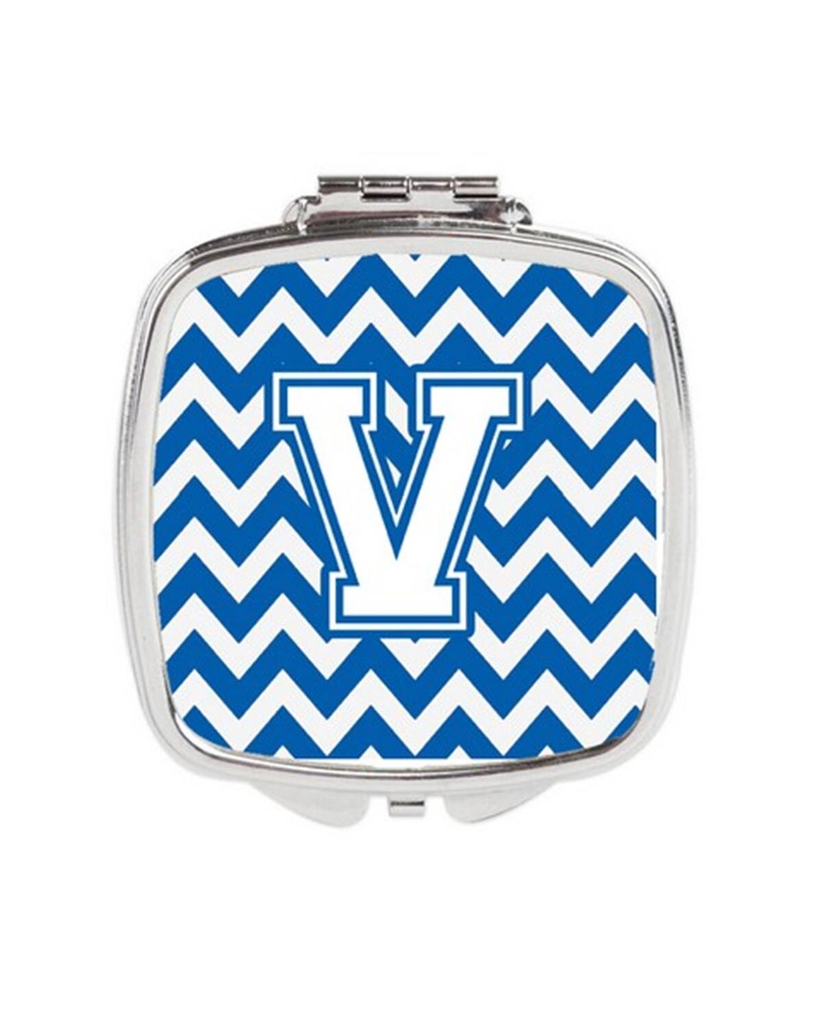 Carolines Treasures CJ1045-VSCM Letter V Chevron Blue & White Compact Mirror, 3 x 0.3 x 2.75 in.