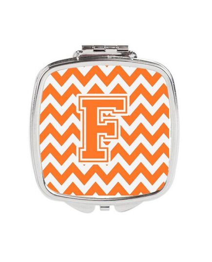 Carolines Treasures CJ1046-FSCM Letter F Chevron Orange & White Compact Mirror