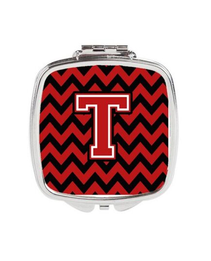 Carolines Treasures CJ1047-TSCM Letter T Chevron Black & Red Compact Mirror