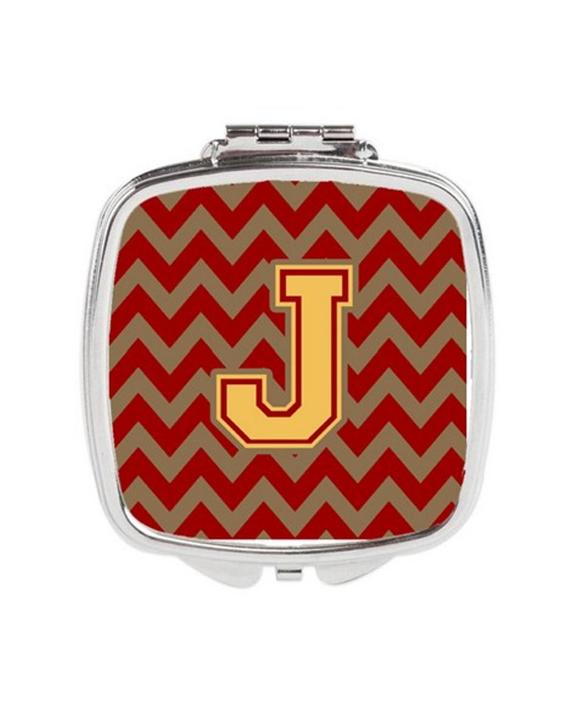 Carolines Treasures CJ1048-JSCM Letter J Chevron Garnet & Gold Compact Mirror
