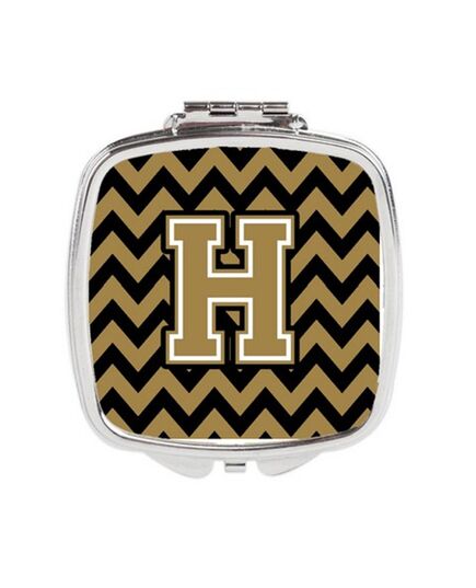 Carolines Treasures CJ1050-HSCM Letter H Chevron Black & Gold Compact Mirror, 3 x 0.3 x 2.75 in.