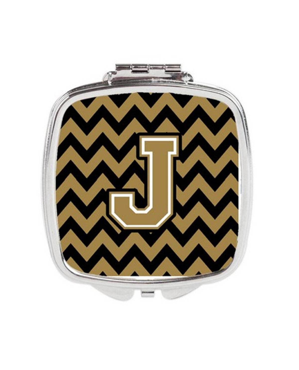 Carolines Treasures CJ1050-JSCM Letter J Chevron Black & Gold Compact Mirror, 3 x 0.3 x 2.75 in.
