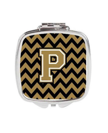 Carolines Treasures CJ1050-PSCM Letter P Chevron Black & Gold Compact Mirror, 3 x 0.3 x 2.75 in.