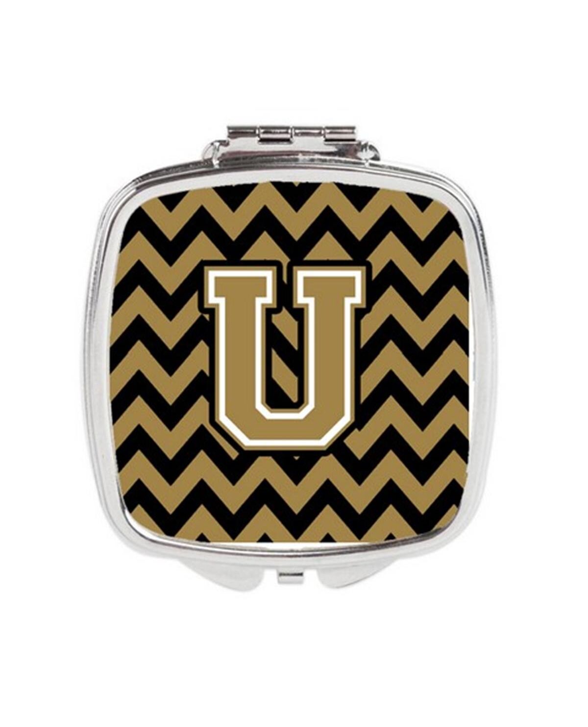 Carolines Treasures CJ1050-USCM Letter U Chevron Black & Gold Compact Mirror, 3 x 0.3 x 2.75 in.
