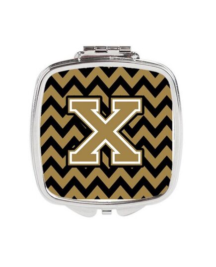 Carolines Treasures CJ1050-XSCM Letter X Chevron Black & Gold Compact Mirror, 3 x 0.3 x 2.75 in.