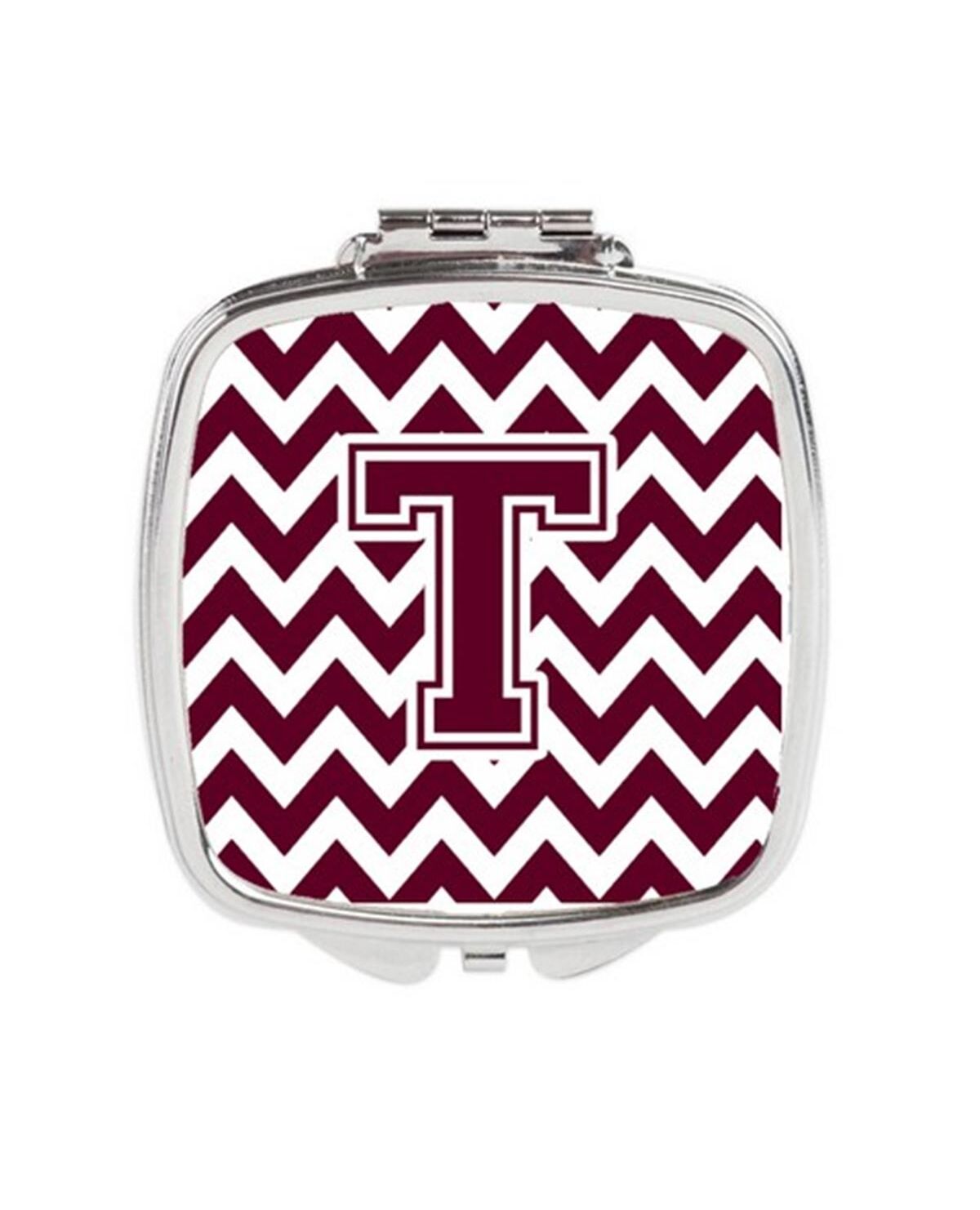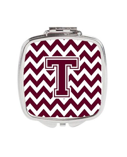 Carolines Treasures CJ1051-TSCM Letter T Chevron Maroon & White Compact Mirror, 3 x 0.3 x 2.75 in.