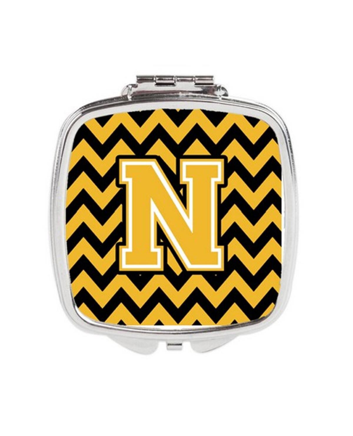 Carolines Treasures CJ1053-NSCM Letter N Chevron Black & Gold Compact Mirror, 3 x 0.3 x 2.75 in.