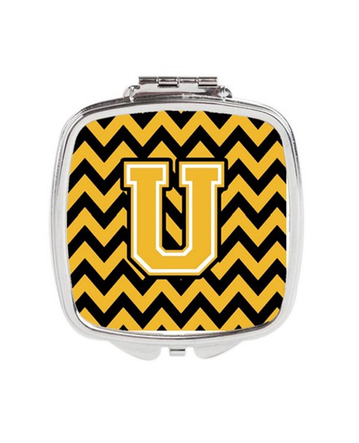 Carolines Treasures CJ1053-USCM Letter U Chevron Black & Gold Compact Mirror, 3 x 0.3 x 2.75 in.