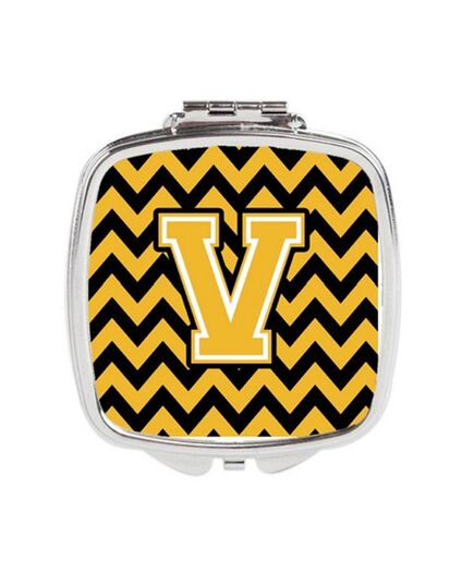 Carolines Treasures CJ1053-VSCM Letter V Chevron Black & Gold Compact Mirror, 3 x 0.3 x 2.75 in.