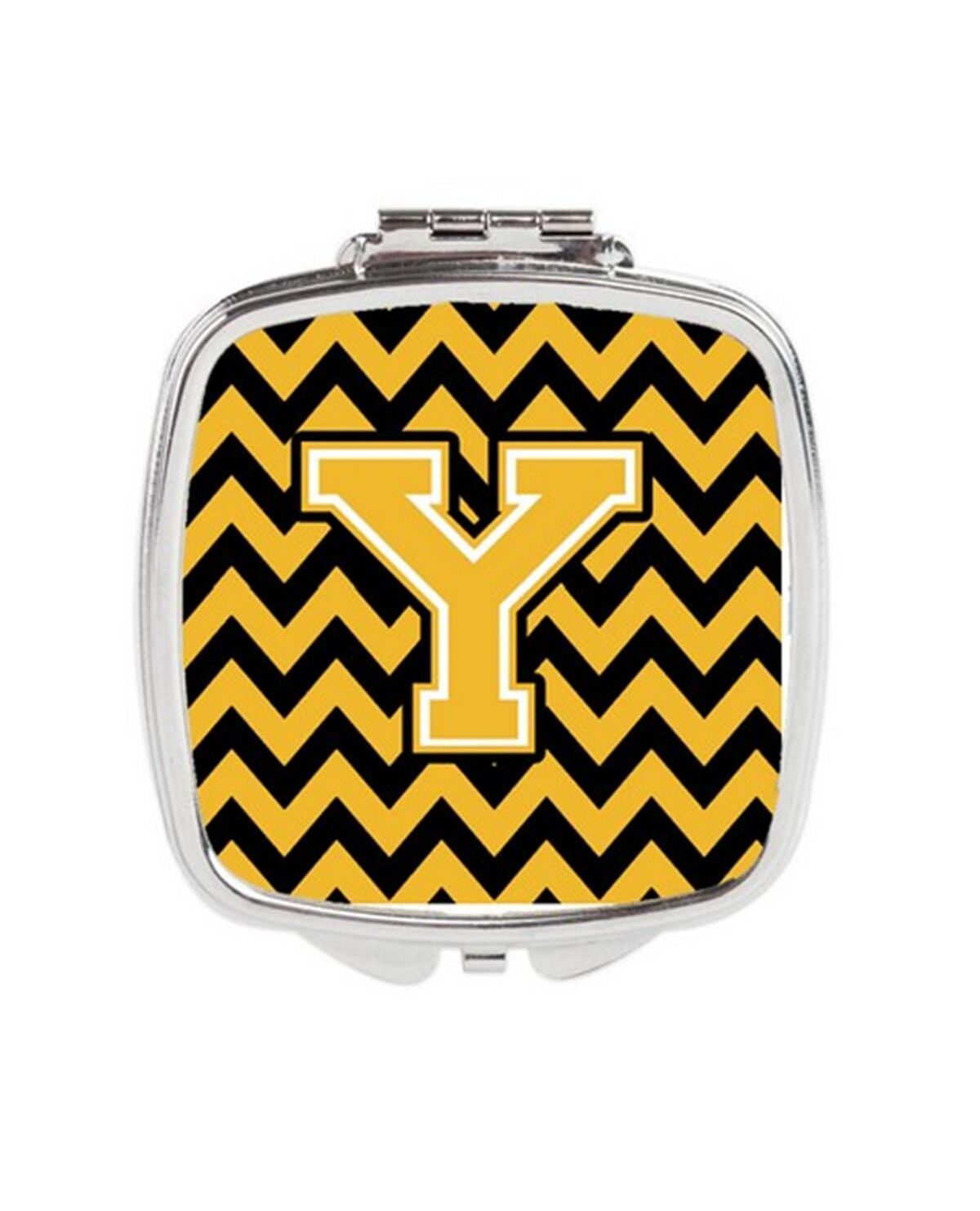 Carolines Treasures CJ1053-YSCM Letter Y Chevron Black & Gold Compact Mirror, 3 x 0.3 x 2.75 in.