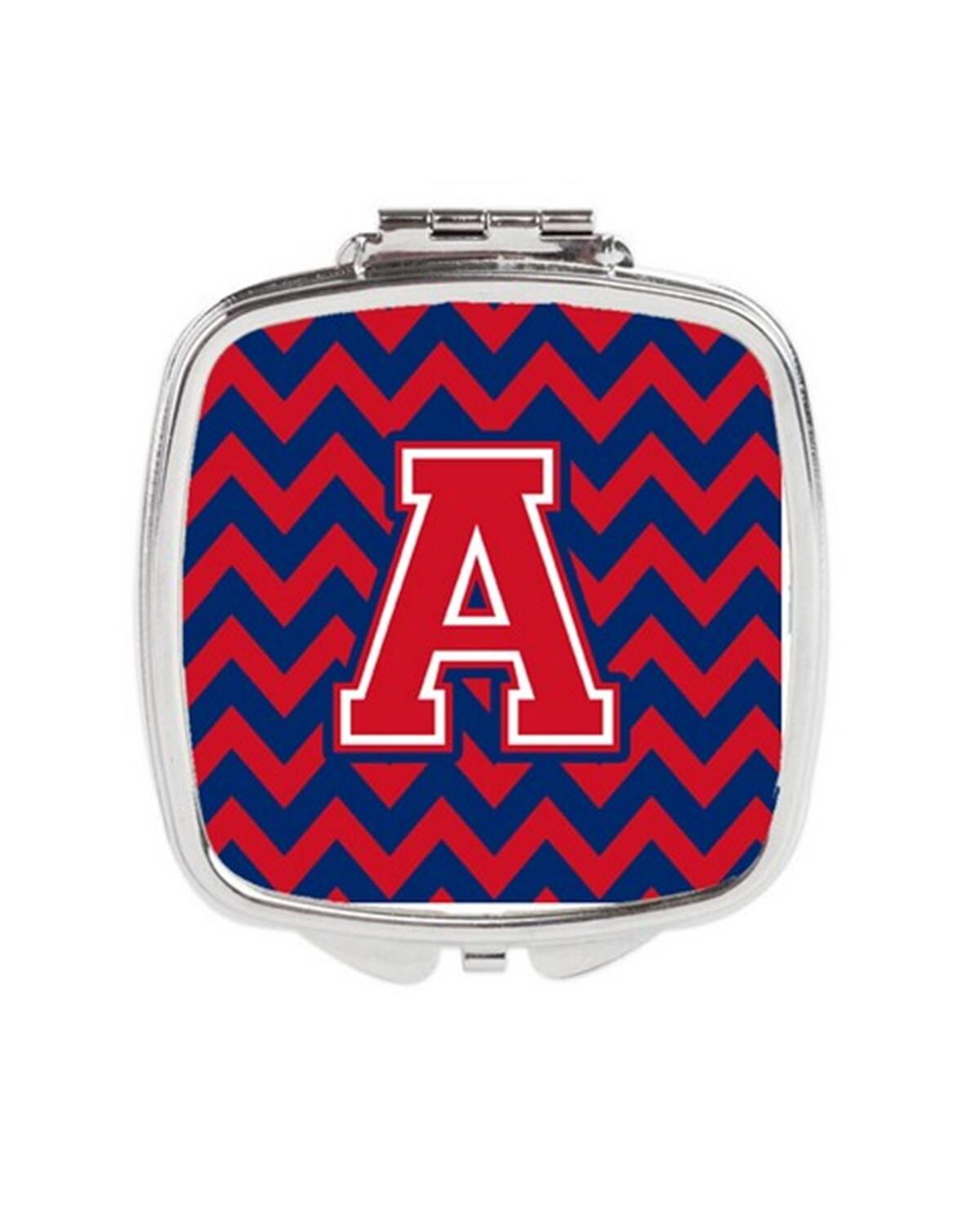 Carolines Treasures CJ1054-ASCM Letter A Chevron Yale Blue & Crimson Compact Mirror