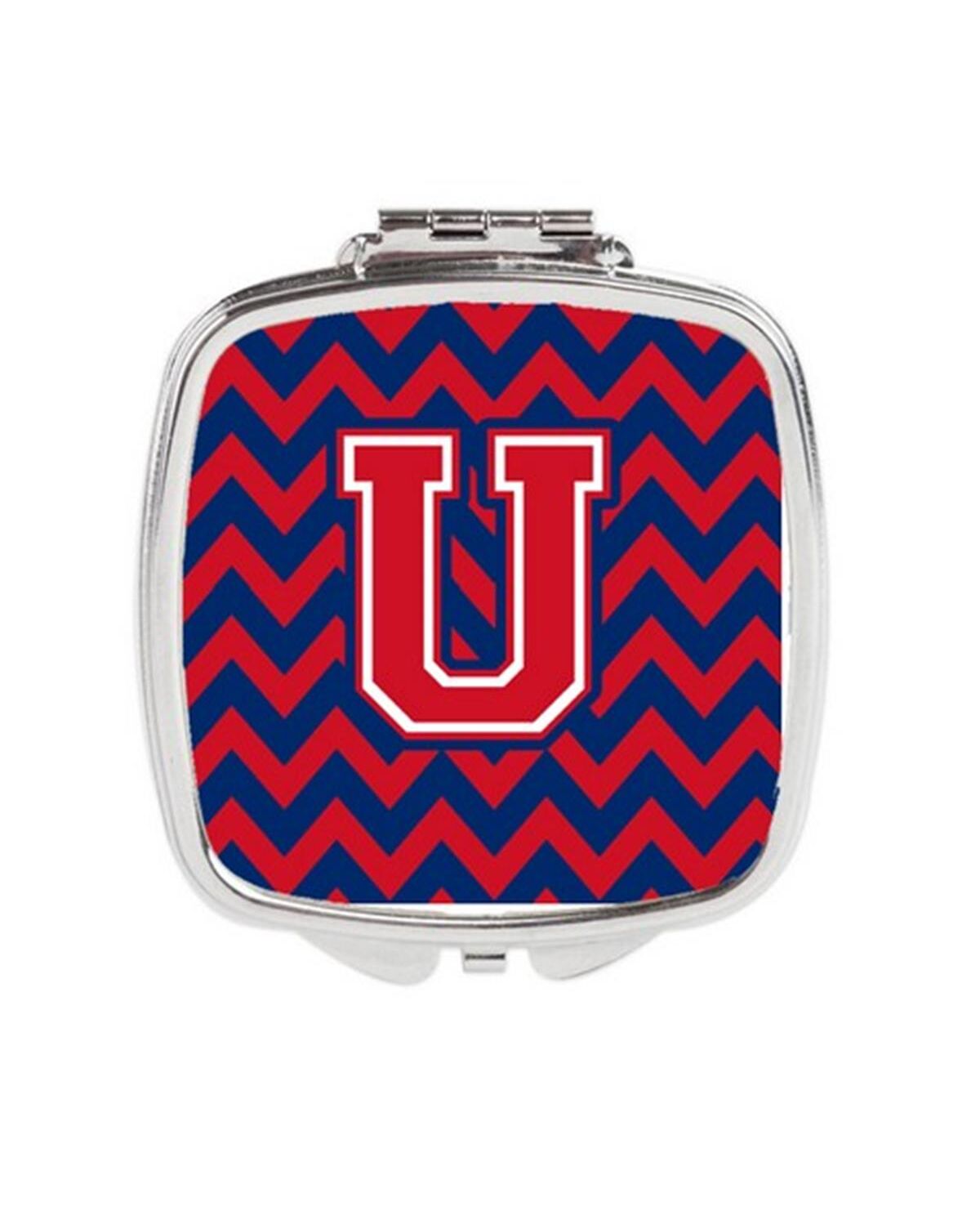 Carolines Treasures CJ1054-USCM Letter U Chevron Yale Blue & Crimson Compact Mirror