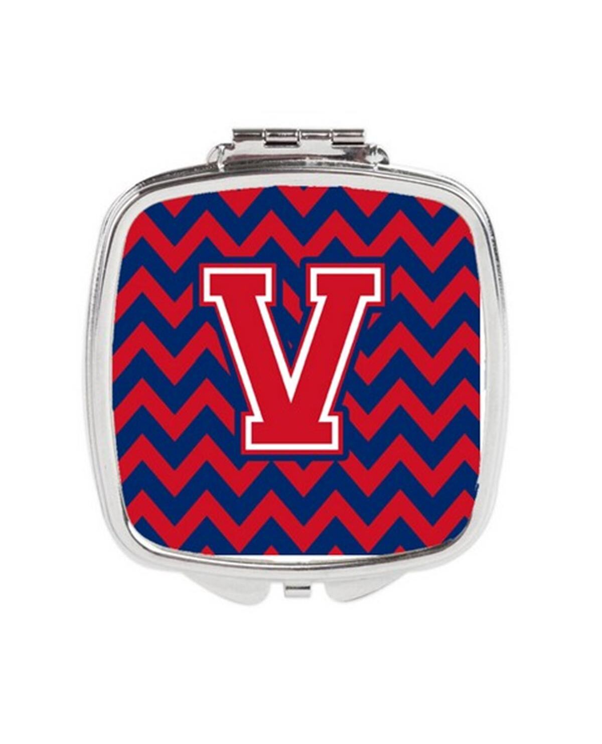 Carolines Treasures CJ1054-VSCM Letter V Chevron Yale Blue & Crimson Compact Mirror
