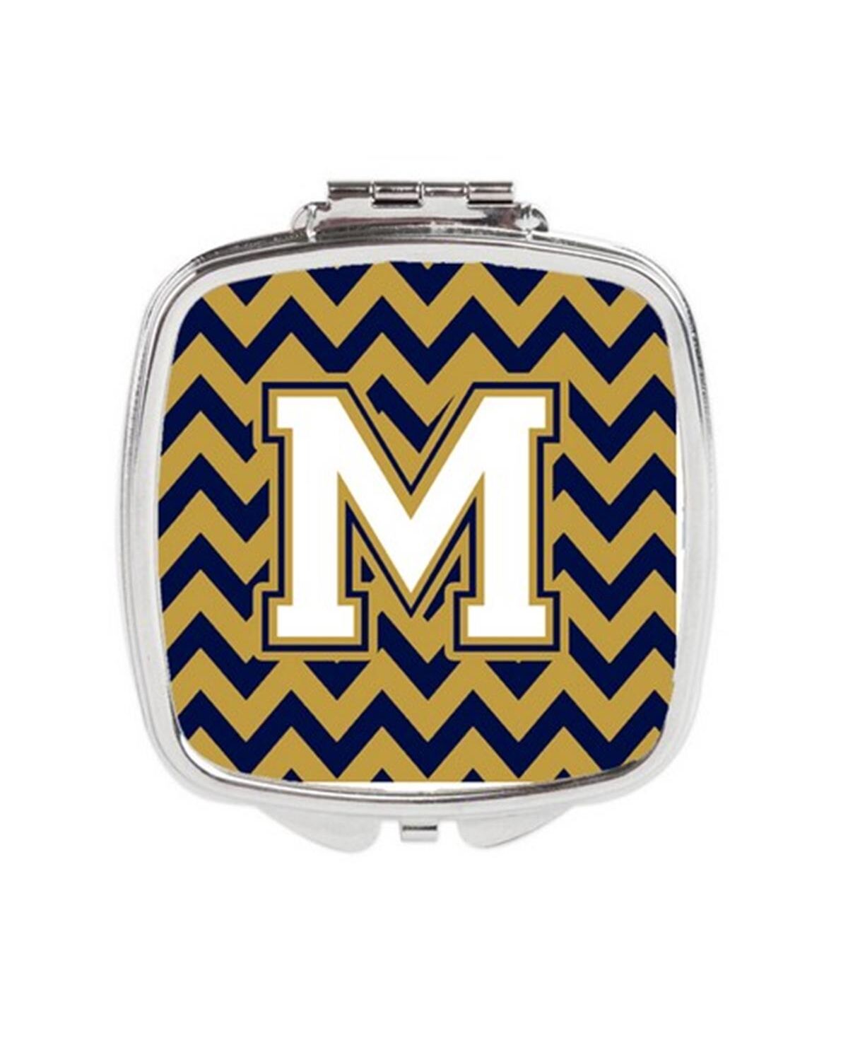 Carolines Treasures CJ1057-MSCM Letter M Chevron Navy Blue & Gold Compact Mirror